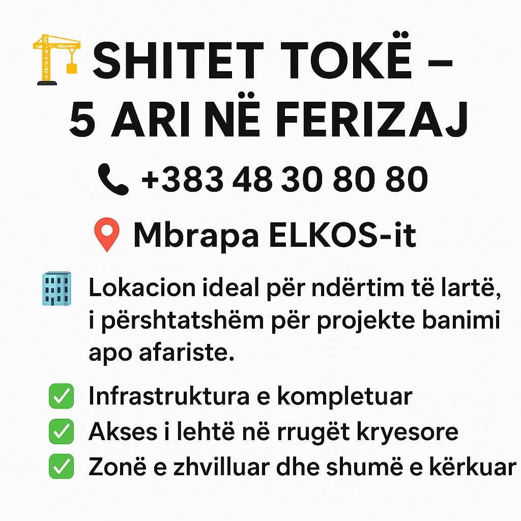 📍 SHITEN 30 ARI – LLABNASELL / PRISHTINË 📞 048 30 80 80 SHITEN 30 ARI TOKË NË NJË LOKACION IDEAL PËR FABRIKË, DEPO, PUNISHTE OSE INVESTIM AFATGJATË. ✅ LOKACION STRATEGJIK ✅ QASJE E SHPEJTË NË RRUGË