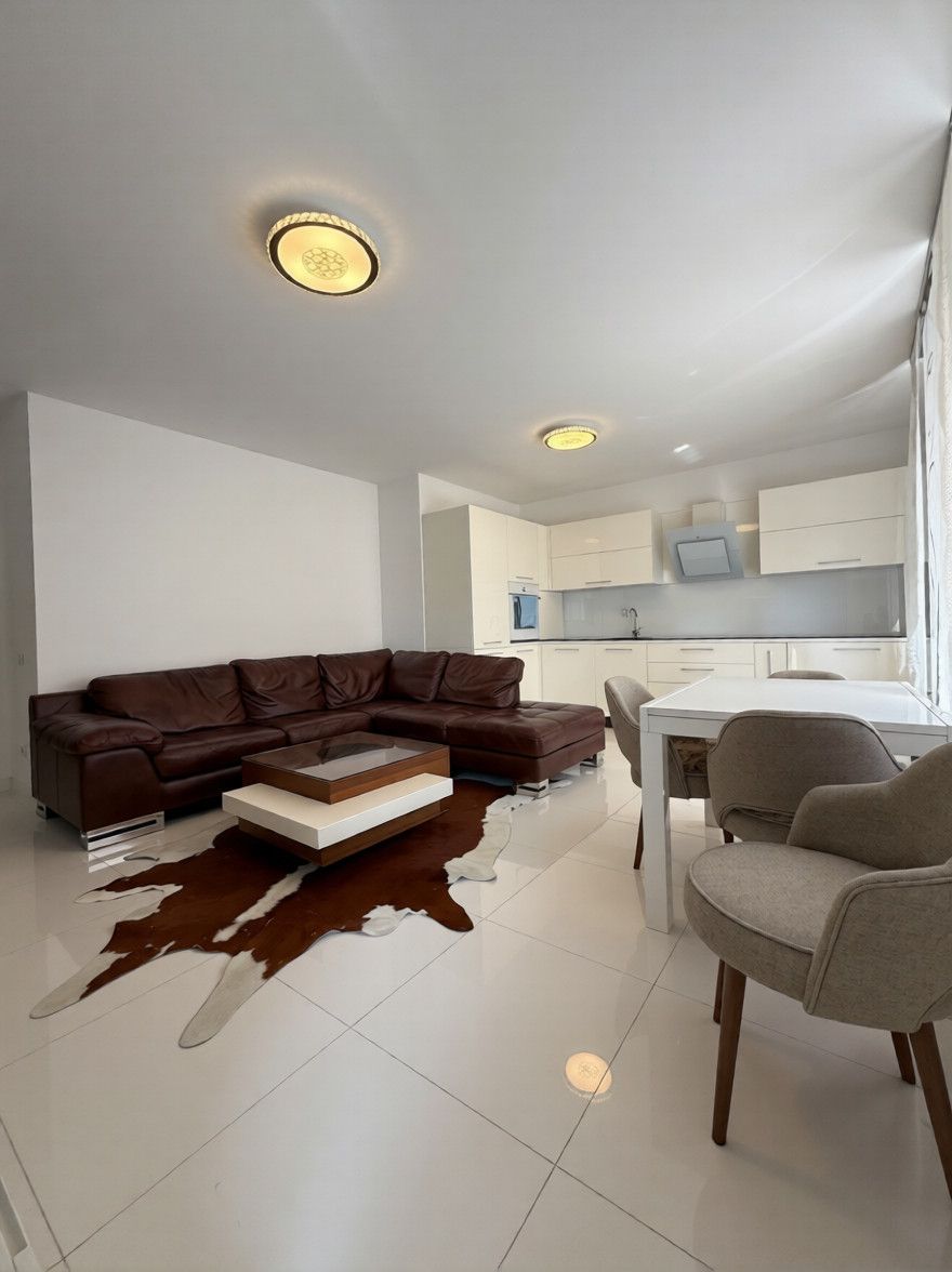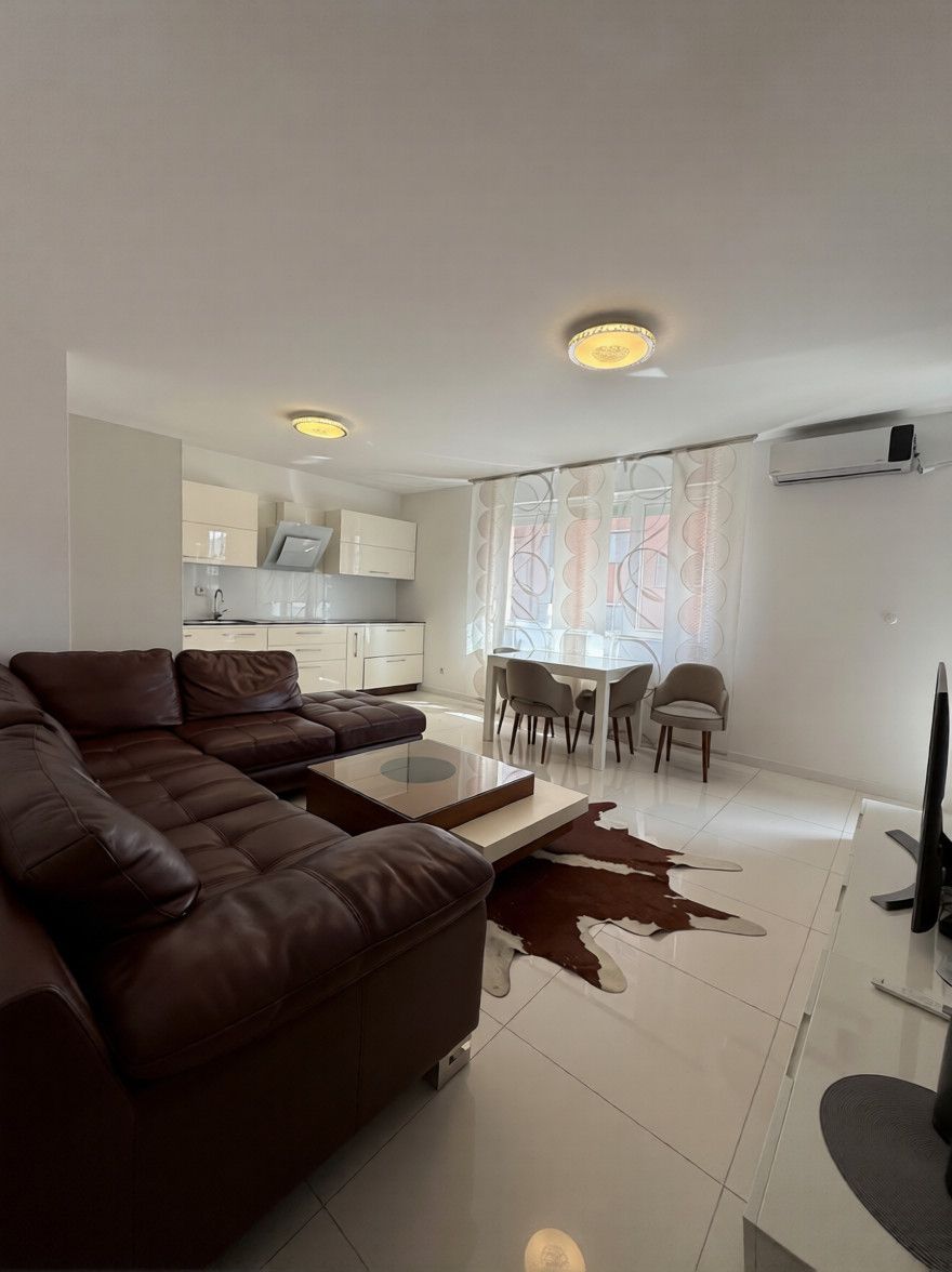 Posedon 84m2 në katin e 5-të me ashensor funksional, komplet e mobiluar kushte te mira banimi.